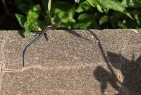 今日の千葉湾岸部の気温は約32度。うちの庭でも、暑さの影響を確認できることがありました。カナヘビが葉っぱの上でぐったりしてました。そっと手の上に乗せても、何だか逃げる元気が無いみたい。iPhoneで写真を撮っている間もとても大人しく、時々目を閉じて辛そうなご様子でした。おかげで、普段見られない至近距離でよーく観察させて貰いました。
