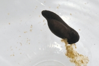 ここのところ、人工池の水が濁って来ていました。少し餌をやり過ぎて、それが傷んだのかも知れません。底の泥をすくってみると、嫌気性の細菌が沸いたと思える臭いがする。要するに泥までが腐っているのです。このままでは水質がどんどん悪くなって、生存に悪影響が出そう。おたまじゃくしをバケツにすくって、池の水を一旦汲み出して、汚泥を除去しました。