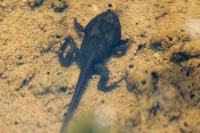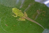 おたまじゃくしの様子は・・・生まれた時期が一月近く遅かったと書きましたが、その後順調に成長しています。この数日で、後ろ脚が出て来たのが確認できました。この後は、急速に成長が進むことでしょう。小さな蛙となって陸地に上がる日がたのしみであります・・・