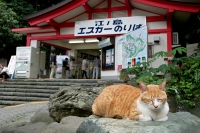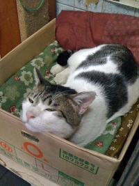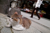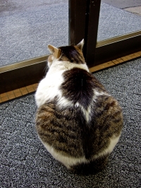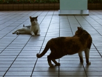 そんな心配を余所に、彼らは冷たいタイルの上でじっと人の行き来を眺めている・・・あくせくしている人間を観察している傍観者たりえる風貌をしています。たくましく生きている猫たちでした・・・