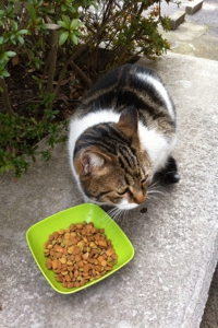 今日 アパートの駐車場に縞猫ちゃんがご飯を食べにやって来ていました。
