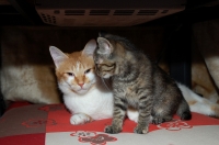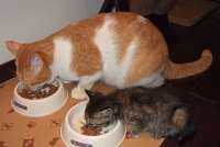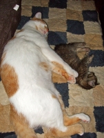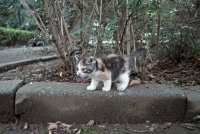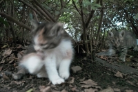 夕方 嫁さんと近くの公園を通りかかった所、仔猫が二匹うろついているのを見かけました。親猫らしき存在は見かけられません。すでに数人の猫好きのおばさん達がその場におりました。どうやら今日その場に捨てられた仔猫ではないかとの話。仔猫は乳離れしたてという感じで一月半くらいたっています。昨年秋に小太郎がうちにやってきた時より少し小さいでしょうか・・・