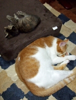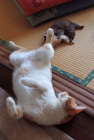 小太郎とぼたんはそれぞれお気に入りの昼寝の場所があります。