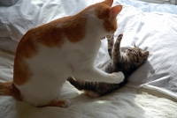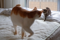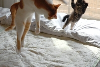 仔猫の方から小太郎に近づいた時には、驚いたりせずに軽くあしらう様に