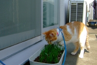 小太郎もすっかり大人の堅い毛に生え替わり、毛繕いをするお年頃。最近では部屋の中の観葉植物にちょっかいを出す様になりました。そこで・・・猫草の種をプランターに植える計画を実施!部屋の中では足でかいて土をとばすので、ベランダに猫草菜園を設置しました。
