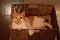洗濯物を入れる籠、以前より小太郎のお気に入りです。