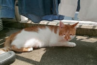 ちょうどベランダで小太郎がゴロゴロしていました。