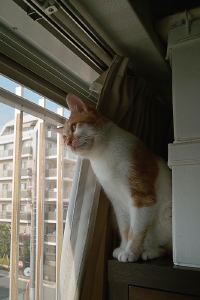 最近 小太郎は窓辺に張り付いて一日中表を見ています。