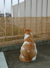 新たな自由を得て、ベランダでリラックスする小太郎です・・・