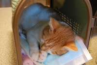 まだ麻酔が効いているとの事で、小太郎は籠の中でぐったりしています。