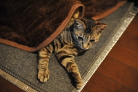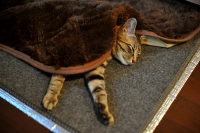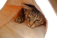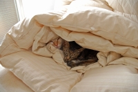 よほど気に入ったのか・・・ぼたんはお気に入りの布きれを、自分で中に引き込んでベッドメーキングまでしております。布きれを表に出すと怒ります・・・