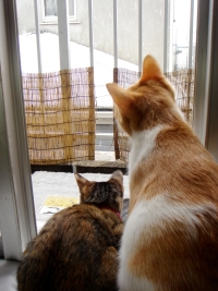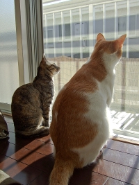 午前中の小太郎とぼたんは 窓の外に意識が行っています。
