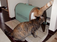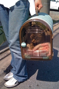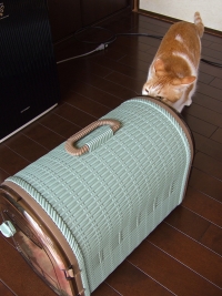 うちには猫用のゲージは一つしかありませんので、花子さんの搬送にそれを使いました。そのゲージは時折ぼたんが昼寝用にも使っている「寝床」となっております。普段は部屋の片隅に蓋を開けて置いてあるのです。猫はいくつかの休憩場所を確保し、ローテーションで回します。それも元野生の習性なのでしょう・・・