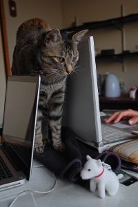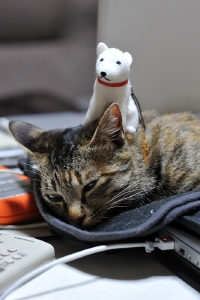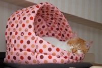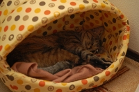 しばらく前に、嫁さんが犬猫グッズの販売イベントに立ち寄って、猫用のベッドを買ってきました。1個500円で二種類ゲット。小太郎もぼたんも「これは自分の!」とそれぞれ唾を付けて最近慣れたところです。