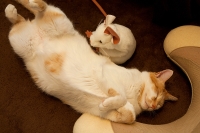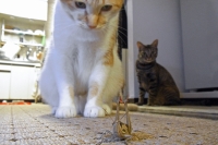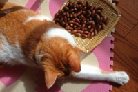 もう少し様子をみるために、とりあえず今晩は箱から出さずに、マタタビの木はトイレに隠したのでした。ちなみに少し感度が鈍い小太郎にはまだ見せていません・・・