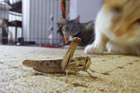 この大きなバッタは手に余る存在だったようです。