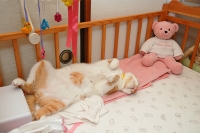 ベッド周りを片付けて「どいてよ」とお尻をおしても頑として動きたく無い様子。
