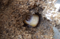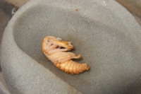 この時期は少し気をつけて見ていないと、菌糸瓶には色々なトラブルが発生します。それは気温が暖かくなってくるにつれ、カラカラに乾いてしまったり、内部にカビが生えたり、ダニが大量に発生したりするので。内部環境が悪化しているのが確認できたら、別の環境に移す必要がありますね。今回も一つダニが発生している瓶があったので、さなぎを取り出しました(写真 二番目)あと、まだ体が硬くなっていませんが、羽化直後の雌も一匹菌糸瓶から待避させました(写真 三番目)処置が遅れると後で悲惨なものを見なければならなくなるので注意しています・・・