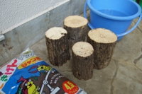 昆虫専門ショップに行って、オオクワガタ用の産卵木(発酵させたクヌギ)をまとめ買いしてきました。それを、まずはバケツの水に10分ほどつけて軽く湿らせます。以前にもコメントしましたが、この時の湿らせ具合はなかなか微妙。木によっては直ぐに水を吸ってずっしり重くなってしまうものもあれば、20分くらい漬けてちょうど良い湿り気になる個体もあります。まぁ、私の場合はやはり10分前後ですが・・・