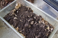ところが・・・今年度はちょっと厳しい状況になっております。何故かというと、3月11日に起こった大震災の影響で、その後自分自身の生活がバタバタしてしまい、幼虫の菌糸瓶の管理に問題を起こしてしまいました。具体的には、幼虫が菌糸を食い尽くして新しい菌糸瓶に移さなければならないタイミングを逸してしまったのと、一部の菌糸瓶にカビが発生したのを見過ごして死なせてしまったりした・・・