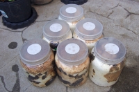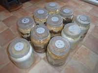 今年は数は多いとは言えないまでも、雄雌の比率のバランスが良いのでワークショップをやりたいです。以下は先日菌糸瓶の状況を確認した時の様子。各写真に付けたコメントを順番に・・・