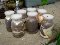 古い菌糸瓶の中の黒い糞はとても良質の土として使えます。程よい堆肥の香りがして、汚いというイメージはありません・・・よく出来たリサイクルです。