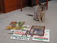 本を見せびらかしているだけではつまらないので、モデル登場です。花子さん、こっちおいで・・・今日の彼女は機嫌が良くて、「はい、こっち見て」っというリクエストにしっかり応えてくれました(笑)