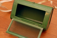 虫かごでは無く本来 植物を痛めずに持ち帰る為のものなのですが、何故か私はこれに木の枝と一緒にカブトムシなどを入れていました。恐らく祖父が虫かごと勘違いして買って来たのだと思います。当時それらの昆虫採集道具は、渋谷にある昆虫専門店の「志賀昆虫」で買ってきたものと思われる。子供の時に何度か行った記憶があるからです。ネットでぐぐってみると今でも売ってますね。基本的な形はあまり変わっていません。