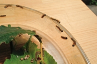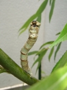このサイズにまで育つとツゲの葉っぱが急速に無くなっていくのが分かります。そしてふと見るとそこに居るのでギョッと驚かされる。虫の嫌いな人が見たら悲鳴をあげること請け合いです(苦笑)