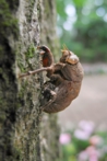 比較的近所にあるアンデルセン公園に家族そろって避暑目的で出かけました。するとニイニイゼミの声が公園の至る所で元気よく聞こえていました。木の幹には羽化したばかりだと思われるセミの抜け殻が。小さくて丸っこくどれもちょびっと土が付いているのが特徴かな。