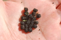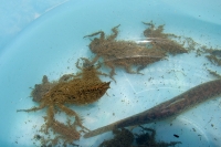 大きいものは4センチ位ありそうです。日本最大のトンボですから納得のサイズ。トンボのヤゴはエイリアンの様な飛び出す大アゴを持っていますので、噛まれたら痛そう。メダカなどを一撃で捕獲する凶暴な奴と言えますね。オニヤンマのヤゴは成体になるまでに3年以上かかり、この姿で何度か越冬するとのこと。そして・・・大人になってからの寿命はたったの2ヶ月ほどだそうです・・・