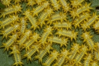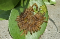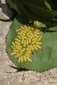 ちょうど一週間前にうちにやって来たオオミズアオが残して行った卵が孵化しました(→120803 蝶と蛾 写真館)同時に全部いっせいに孵ることに不思議なものを感じます・・・