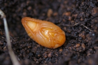 今日 中の土をほぐしていたら、そこに黄金虫のさなぎを見つけました。