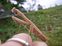 今 最大サイズになっている昆虫のひとつに「かまきり」のメスがいます。卵を腹に一杯かかえて産卵場所を探しています。 (もしかしてこれも気持ち悪かったりするかなー??)
