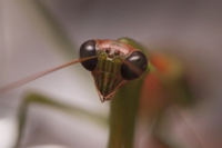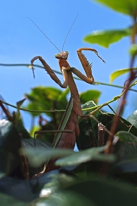 ちょうど良い機会なので、アップの写真を撮らせてもらいました。前脚だけが獲物を捕らえやすい様に釜の形に進化したのは、ほんとに不思議なことです。またその目はいつも何かを探しているかの様に、異様な光をもって輝いているのが印象的でした。