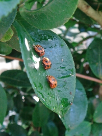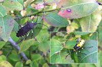 種族不明のカメムシ(羽の無いのはその幼虫と思われる)