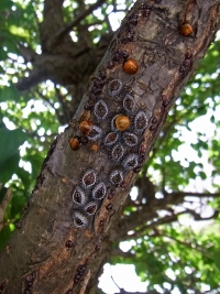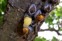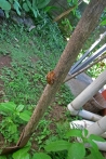 特にお呼びでないのが「スズメバチ」と「毛虫」でした。スズメバチは他の虫を捕らえて肉団子にしたり、樹液の密も吸ったりと何でもありの雑食です。大変どう猛でその毒は人を殺せるレベルですから絶対に関わり合ってはいけない!出会ったら問答無用で即撤退。毛虫は・・・木の肌に保護色になって張り付いているやっかいな種類がいるのです。うかつに腕がふれたりすると激しく炎症を起こしますので要注意!触らなくても気持ち悪いので不意に現れると心拍数が一気に上がります!