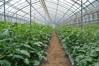 温室の中には多くの蜂がぶんぶん飛んでいました(写真 中)顔の間近を飛び回る蜂の羽音にちょっとすくみましたけれど、現場の人の「大丈夫だから」という言葉を信じて、作物の写真を撮って来ました(汗)