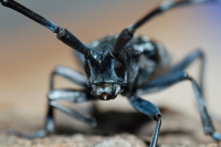 ・・・せっかくなのでアップで狙いたい所ですけれど、じっとしていないのでなかなかピントが合いません。クローズアップ撮影ではAFの合焦スピードは間に合わない。MFでタイミングを計ります・・・よく見ると右前足の先が有りません。どうしたんでしょうか・・・ゴマダラカミキリはご覧の様にマリンブルー系の鮮やかな体色をしています。とても綺麗です!昆虫の中には何故そんな鮮やかでなければならないのか!?と疑問になる程カラフルなものが多いですね・・・