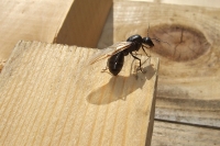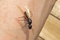 今日は広い範囲でクロアリの羽蟻を見かけました(クロオオアリではありません)恐らく、多くの巣から一斉に王アリと女王アリが旅立ったのだと思われます。一日限りのこの巣立ちは「結婚飛行」と呼ばれています。注意して見ていると毎年観察できる蟻の年間行事であります・・・