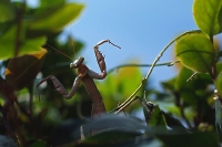 ちょっと触るともの凄く怒って、羽を広げてカマを構える威嚇の