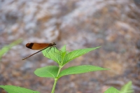 今回 伊豆の河川で見かけたのはオレンジ系のミヤマカワトンボと思われる種類です。ちなみに紫色のは黒っぽく見えるのでハグロトンボと呼ばれます。その生態は未だ詳しく分かっていないみたいです。