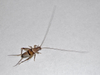 ゆうべ、カネタタキの声が部屋の内側で聞こえました。ベランダの網戸が少し開いていたので、入ってきたのでしょう。偶然にも、白い壁の良く見える所にいました。さっそくカメラカメラ。この虫はちょうどチャバネゴキブリの幼虫と同じ様な歩き方をします。ちょこまかとすばしっこく、じっとしていない。だから、写真に撮るのはかなり難しいのです。(ボケボケのものなら以前から何度もトライして撮ってあります)