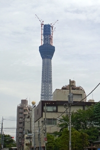 押上界隈には比較できるほど高層の建築物がなく、東京スカイツリーが完成した暁には、周囲の再開発が活発化して街は激変するかも知れません。本来ならこれほど巨大な建物が近所に建ったら迷惑に感じそうですが、観光の超目玉になることに間違いなく、歓迎されているみたいです。押上の名が有名になり、地元にとっては願ったり叶ったりでしょう。