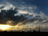 今日の夕焼けは大変すばらしいグラデーションの彩でした。オレンジから藤色になだらかに変化していく妙はまるでイラストの様です・・・今回に関しては現実の感動を超える写真は撮るのが難しそう・・・