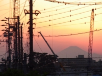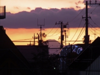 そこから見た街の建物の挾間からは、ちょうど富士山の山頂付近が少し見え、NTTの電波塔のシルエットがそこに映える。しばらく時間を忘れてそのあかね空を眺めておりました・・・