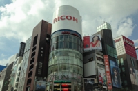 車で銀座にさしかかって交差点で止まっている時に、iPhoneでちょっとスナップを撮りました。窓を開けずにガラス越しで撮ったら、それがちょうど良いフィルターワークになった様で、若干グリーンがかったコントラストの低い画像になりました。何か良い感じです。偶然かかったエフェクトでした。