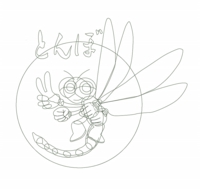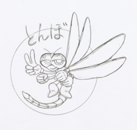 小学生にも伝わりやすい様に、少し漫画チックにしようと思いました。いくつかデザイン案を考えてみましたが「ギンヤンマ」をモデルにしたキャラクターをかわいらしくするのは、思ったよりうまく行きません・・・とりあえず、ラフを描いてパス起こし、最初のベタ塗りまで一気に進めましたが・・・たとえば、目つきにクレームがつくかな等々・・・エトセトラ