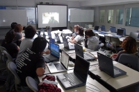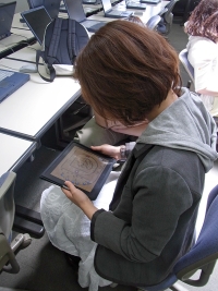 自分が良いと思っていても他の人が同じように評価するとは限りません。この場で良い良いと騒いでいても独りよがりになるので、専門学校の授業にiPadを持ち込んでみました。この数日の報道で、ほとんどの人に予備知識が行き渡っている様です。プレゼンは容易でした・・・おもちゃ科とコンサート・イベント科の学生さんに触ってもらって感想を聞きました。ほとんどの反応が、操作性の簡単さとレスポンスの良さ・画面の綺麗さに関するもの。使い易くて面白いという好印象。関心度が高くて話のネタには良かったです。