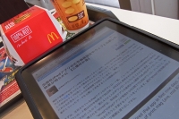 今日の昼は出先にて昼食時にモスバーガーに入りました。週に一度くらいは行く店で、いつも座るお気に入りのカウンター席があります。そこで、昨日買った週刊誌「エコノミスト」を開いていました。今週号の特集は「電子書籍」・・・はからずもNEWSWEEKや他の雑誌も同じ特集で似たり寄ったりの記事を書いていますね。疑心暗鬼でこの商品を見ている人も大勢いますから「いったいどんな意味があるのか?」と、この得たいの知れない端末をいぶかしく思っていることでしょう。
